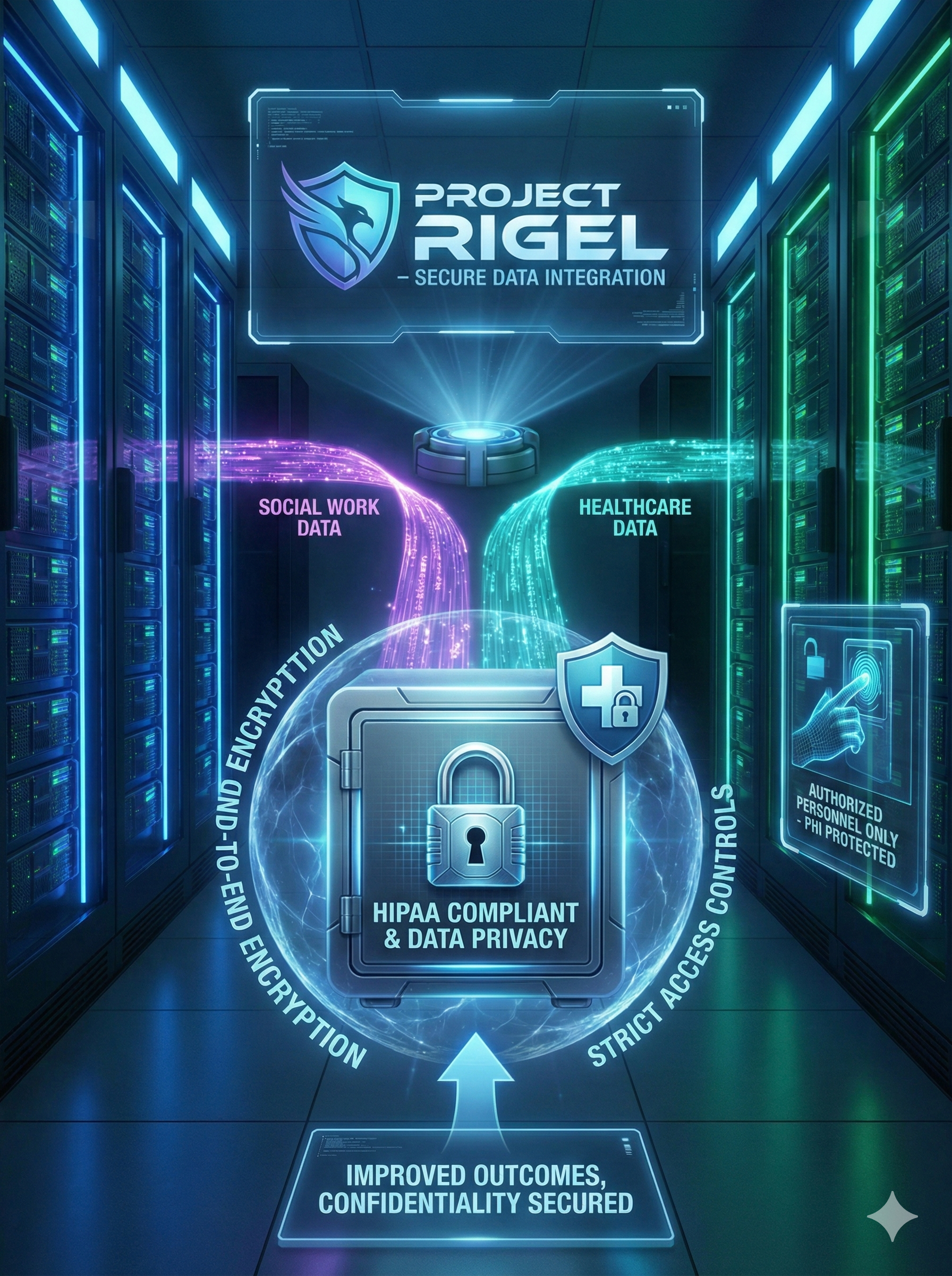 Project Rigel will be designed to handle the sensitive intersection of social work and healthcare data. By adhering to HIPAA standards, the system will implement rigorous technical safeguards.