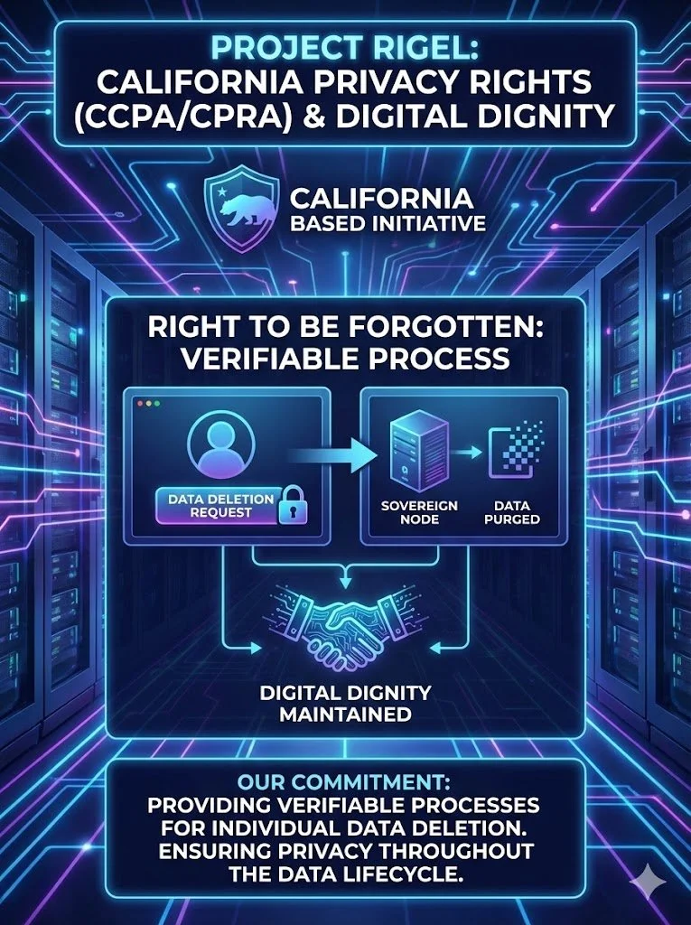 We will provide verifiable processes that will allow individuals to request the deletion of their data from our sovereign nodes, ensuring that "Digital Dignity" is maintained throughout the entire data lifecycle.